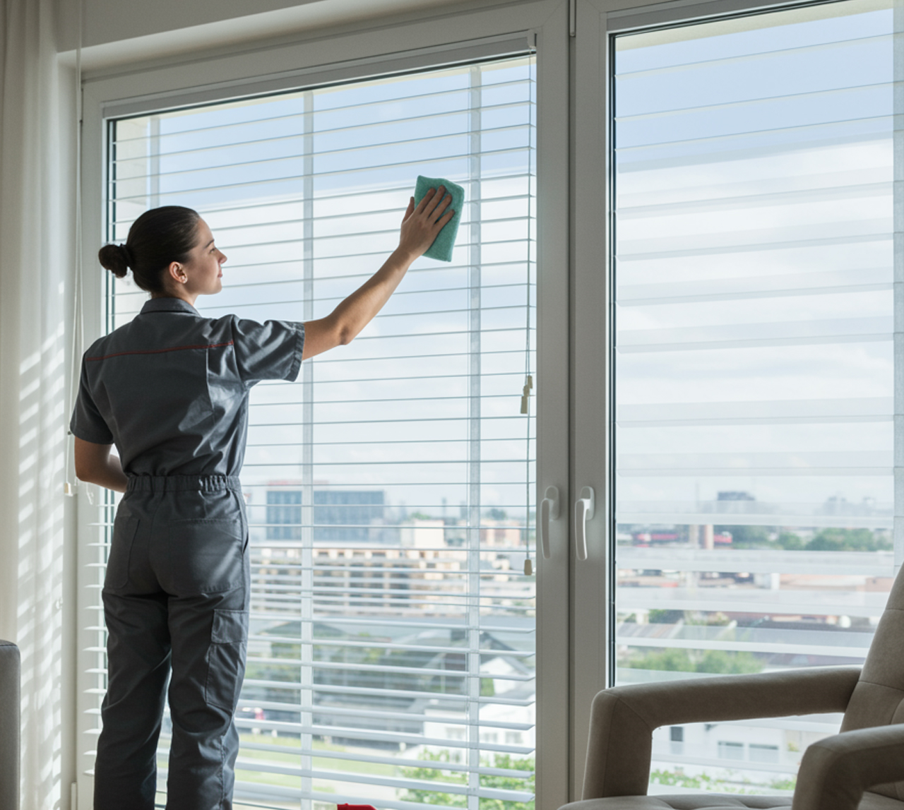 - On-site cleaning for all blind types using eco-certified, allergen-safe products